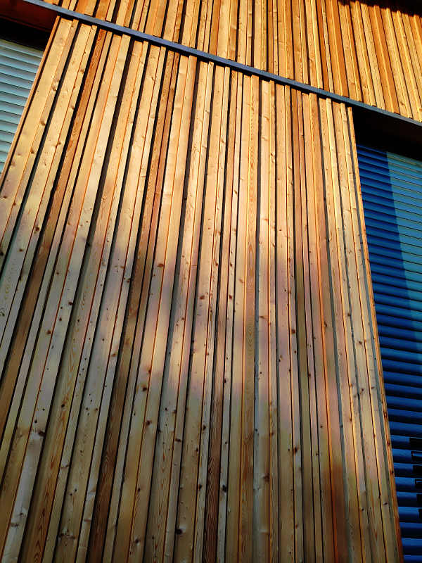 Durch die Kombination verschiedener Höhen und Breiten entsteht eine reliefartige Fassadenverkleidung. Dabei kann wahlweise ein Abstand zwischen den einzelnen Elementen erzeugt werden, der diese Wirkung noch zusätzlich unterstützt.